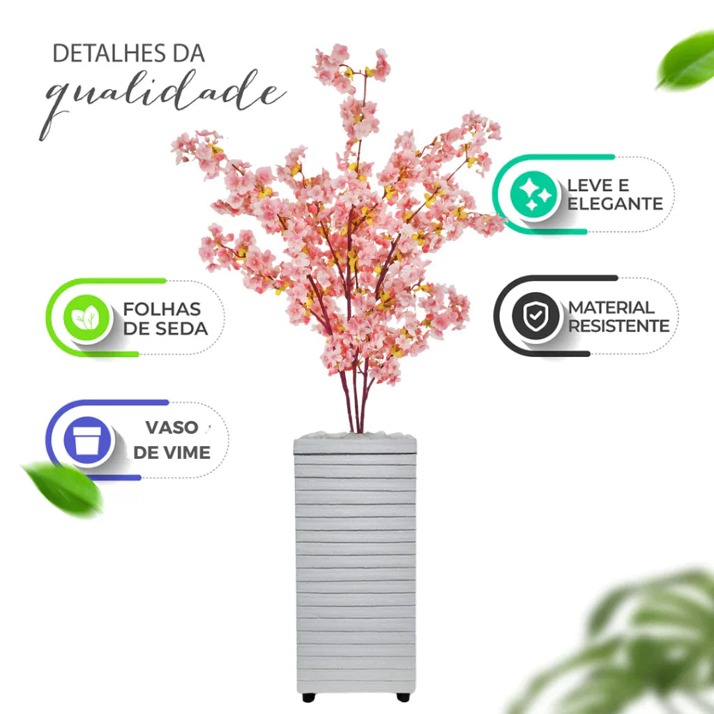 Árvore artificial que imita a beleza das cerejeiras em flor. Ideal para decorar ambientes com elegância e sofisticação.